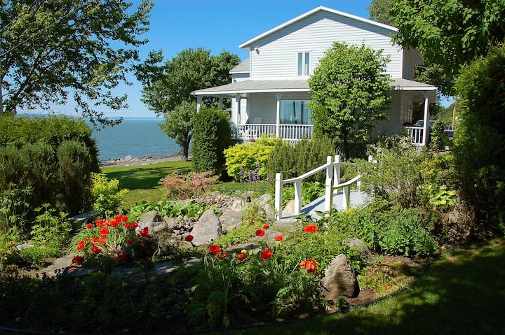 Bâtiment de type patrimonial offrant des logis coquets avec vue splendide sur le Fleuve - 111. Profitez des résidences dété à quelques pas de lauberge. AVEC VUE MAGNIFIQUE SUR LE FLEUVE.